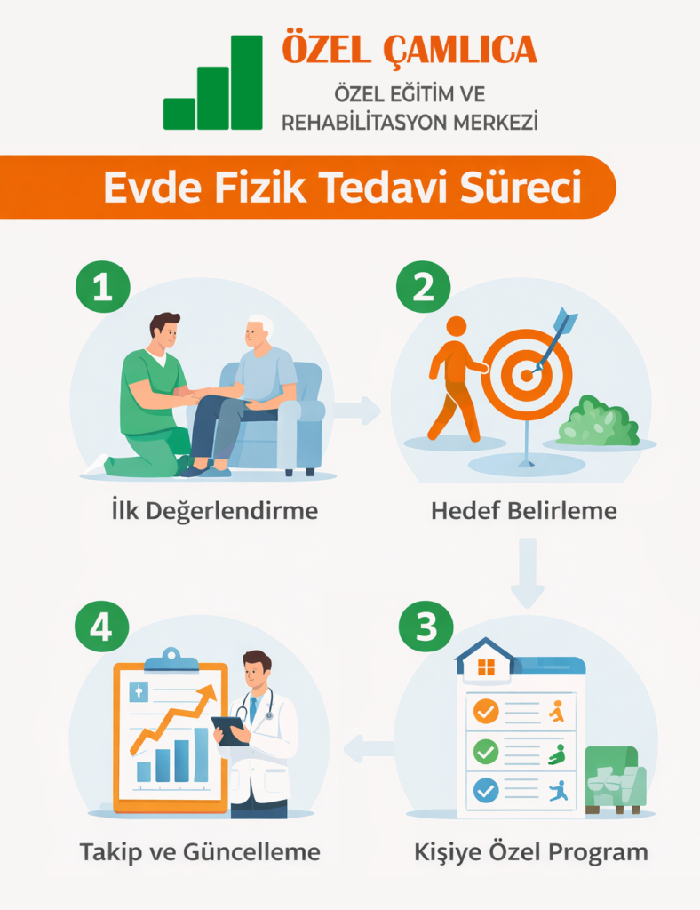 Çamlıca Özel Eğitim ve Rehabilitasyon Merkezi olarak, İstanbul Anadolu Yakası’nda çocuk, yetişkin ve yaşlı bireyler için evde fizyoterapi hizmeti sunarken; yalnızca hastaya değil, tüm aileye eşlik eden bir yol arkadaşlığı anlayışıyla çalışıyoruz.